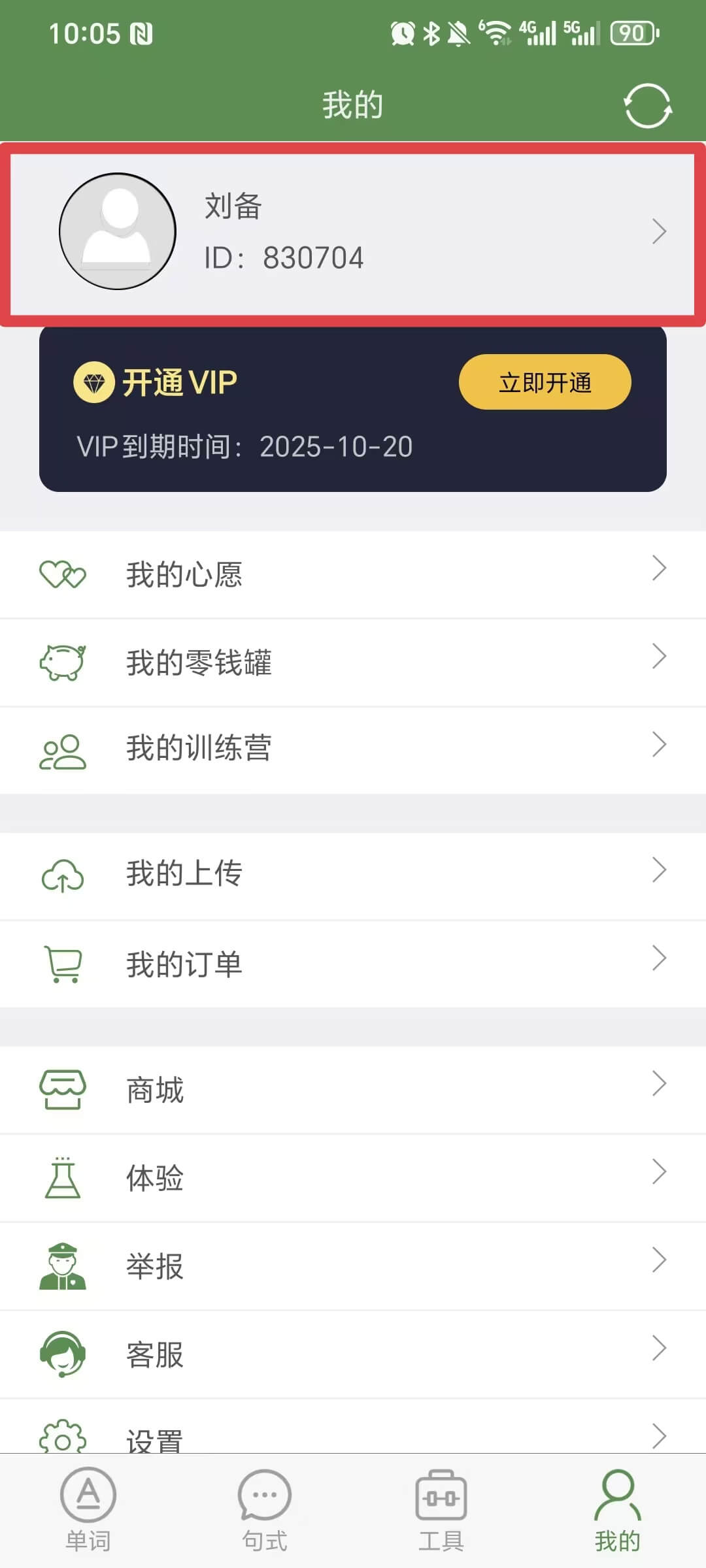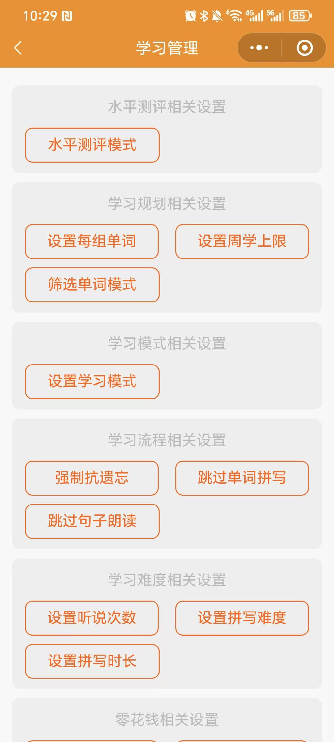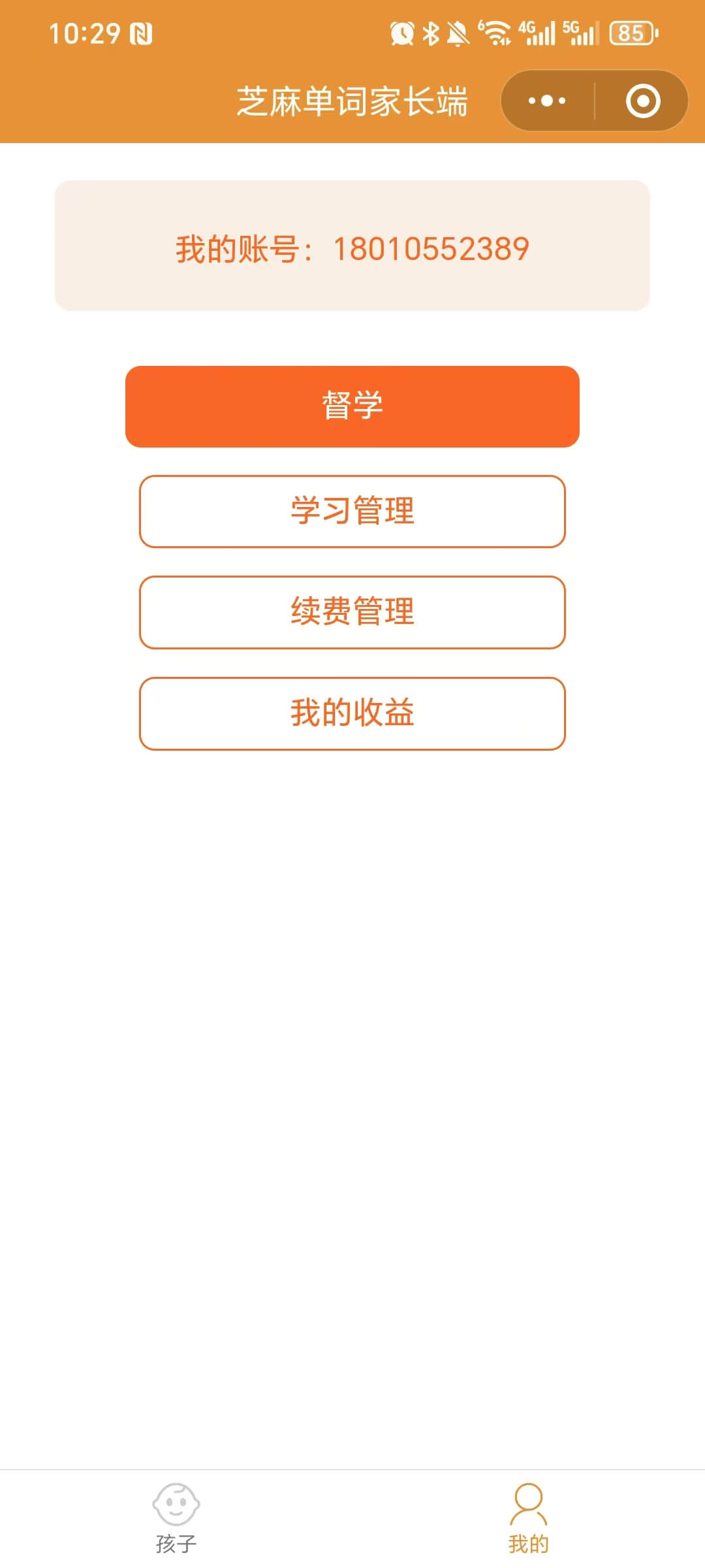 老师首先登录芝麻单词家长端小程序,点击【我的】按钮,点击【学习管理】,在学习管理中进行设置。